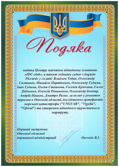Спасибо нашим дайверам, Владлену Тобаку, и Одесской областной администрации.